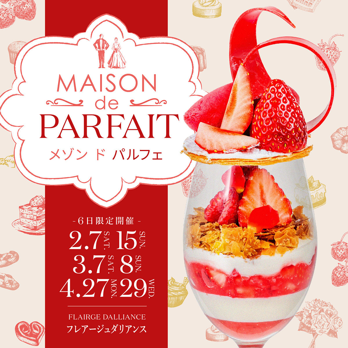 フレアージュ ダリアンスが贈る いちごを贅沢に堪能する限定イベント 内容:旬のいちごを使用した艶やかで甘美な スペシャリテをお届けいたします 贅沢パルフェとスイーツを美麗な空間でお楽しみください