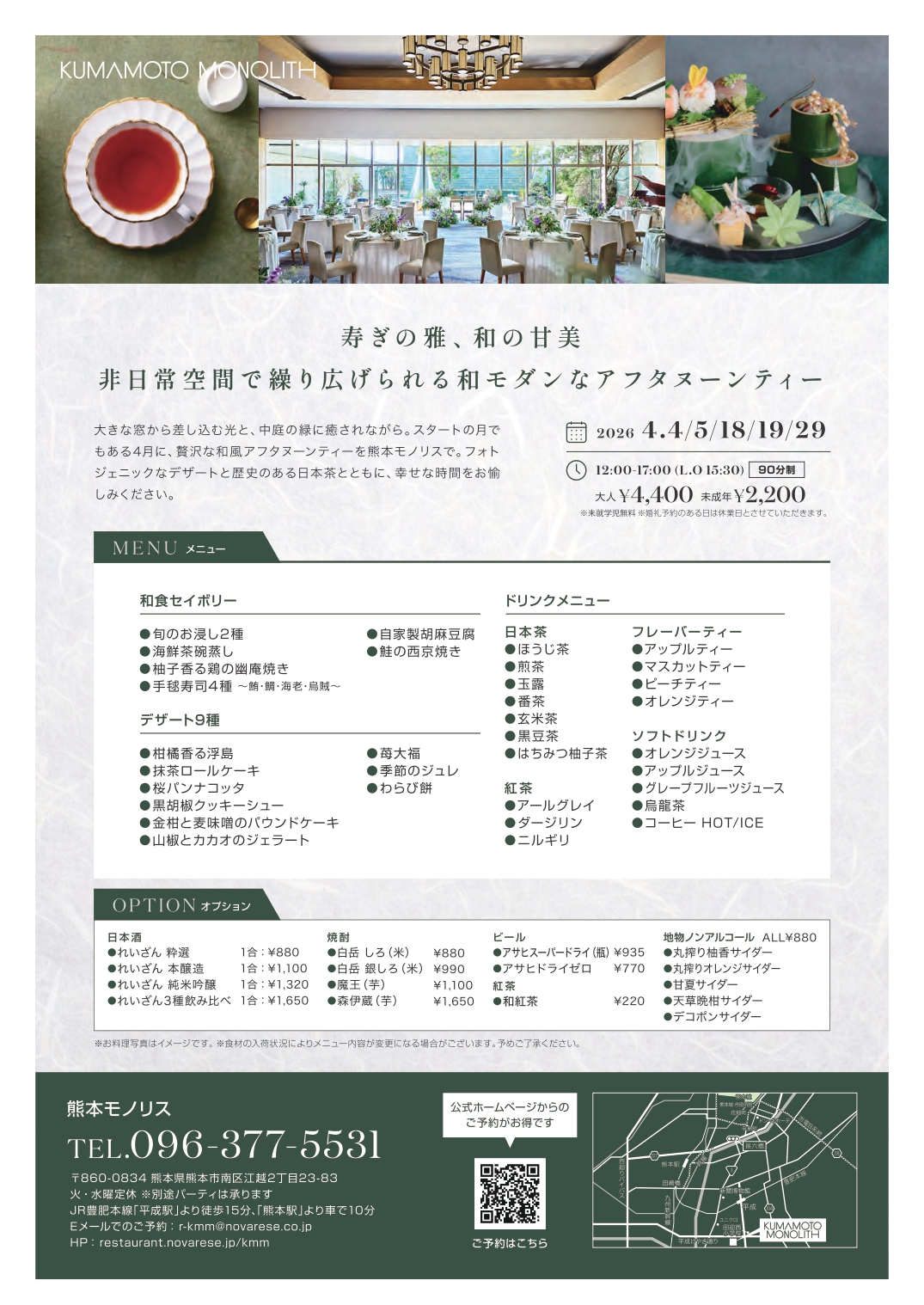 熊本モノリスが贈る 和モダンなアフタヌーンティー