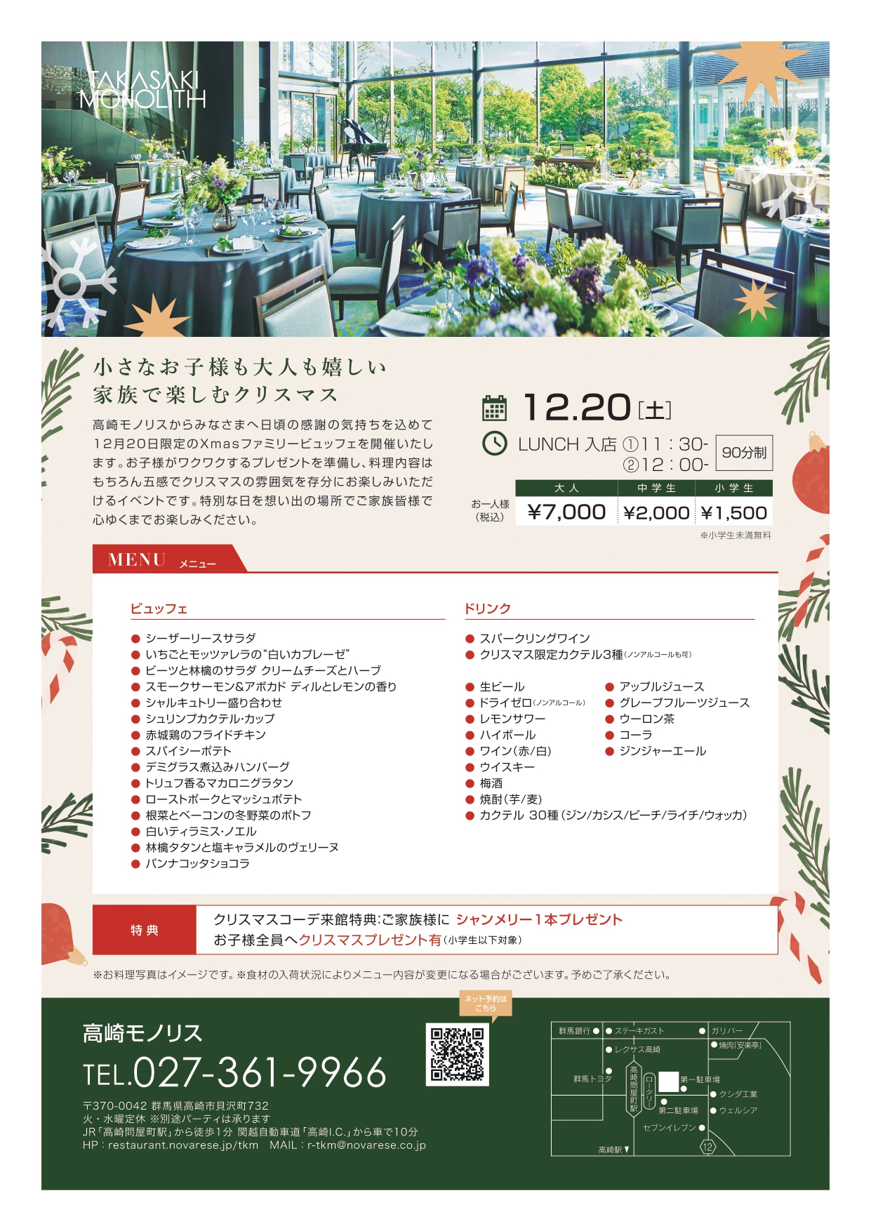 12/20(土)1日限定開催 家族で楽しむクリスマス